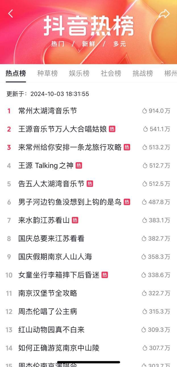 城市文旅要想“出圈”,既要線下留量,也需要線上流量。依托抖音自身“流量場”,「心動常州」充分調(diào)動平臺海量優(yōu)勢資源,從線上主會場到快篩+商品標題前標簽、貨架標簽、直播間指示器等,以強勢曝光拉滿線上火熱氛圍。此外,活動還集結(jié)本地高粉達人、城市優(yōu)質(zhì)商家、娛樂營銷號發(fā)布常州吃喝玩樂旅游攻略,解鎖輕松暢游常州的出行方式。在國慶期間,#來常州給你安排一條龍旅行攻略 話題熱度沖上常州本地熱榜第三,升溫城市熱度的同時,拉動商家交易量不斷上漲。