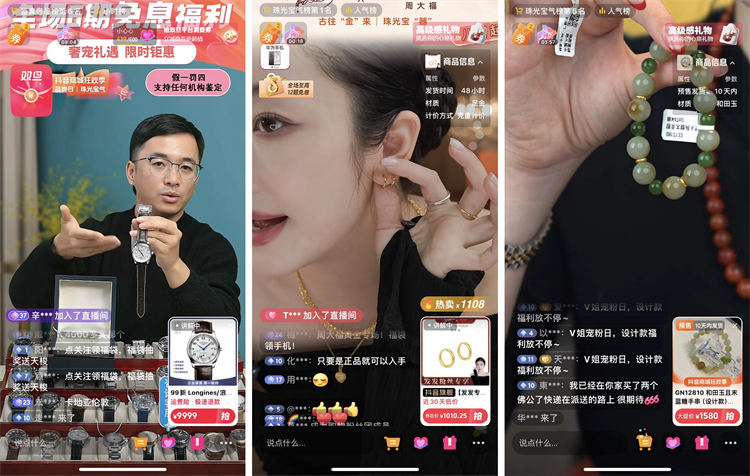 在全域興趣電商的生態(tài)下,好內(nèi)容始終是生意發(fā)展的“源頭活水”,是商家獲取流量、打開(kāi)增長(zhǎng)空間的關(guān)鍵所在。作為強(qiáng)視覺(jué)吸引力、深故事底蘊(yùn)的商品,珠寶潮奢向來(lái)自帶“關(guān)注光環(huán)”,極具內(nèi)容溝通價(jià)值?;诖?“高級(jí)感新年禮物”活動(dòng)期間,一眾珠寶潮奢商家在豐富多彩的直播間玩法基礎(chǔ)上,紛紛開(kāi)始嘗試內(nèi)容型直播間。