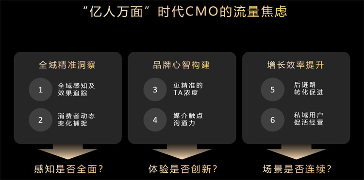 為什么說(shuō)是全場(chǎng)景?這里除了前面所說(shuō)的軟硬件結(jié)合,以及媒體生態(tài)規(guī)模,很重要一點(diǎn)就是:可以用一個(gè)帳號(hào)連接全域數(shù)據(jù),通過系統(tǒng)級(jí)入口和三方生態(tài)級(jí)入口,用連續(xù)性的媒介觸點(diǎn),為品牌提供快、全、準(zhǔn)的數(shù)據(jù)洞察和場(chǎng)景化營(yíng)銷方案。如此,鯨鴻動(dòng)能全場(chǎng)景生態(tài)體現(xiàn)了3個(gè)大的優(yōu)勢(shì)。