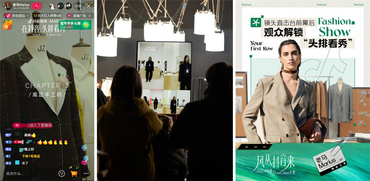 諸如第一視角走秀、一鏡到底臺前幕后等設(shè)計,更是讓抖音直播間的觀眾仿佛坐在大秀頭排。