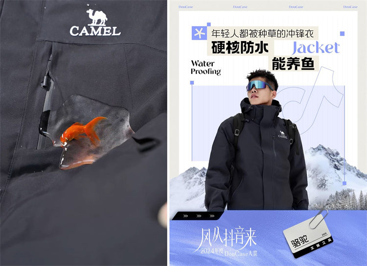 還有戶外品牌駱駝,一開始其實是有用戶發(fā)布了一條視頻,說自己在戶外睡駱駝帳篷,結(jié)果因為過于防水,帳篷都快被淹沒了才發(fā)現(xiàn)外面下雨了。