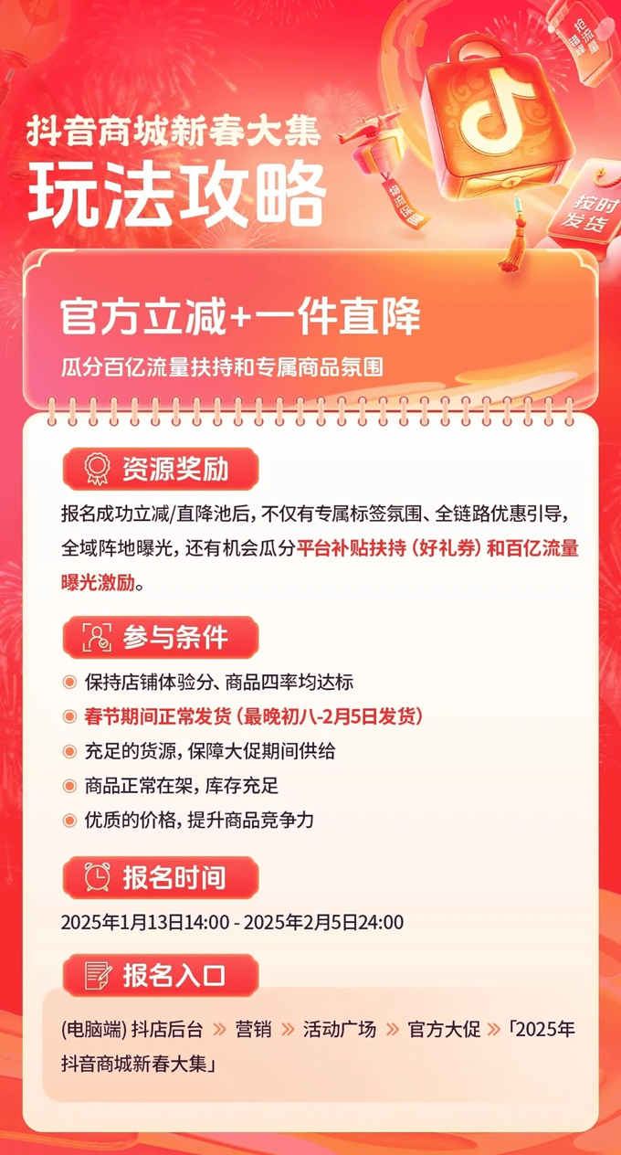 這兩大玩法通過優(yōu)惠補(bǔ)貼,幫助商家提升商品價(jià)格競(jìng)爭(zhēng)力,讓大促玩法更簡(jiǎn)單、參與門檻更低,進(jìn)一步擴(kuò)寬商家生意規(guī)模;同時(shí),抖音電商也給予了報(bào)名成功的商家全鏈路優(yōu)惠引導(dǎo)的專屬標(biāo)簽,以及平臺(tái)好禮券的加碼扶持,讓其有機(jī)會(huì)分享百億流量激勵(lì),全力保障商家春節(jié)營(yíng)銷活動(dòng)的順利開展。