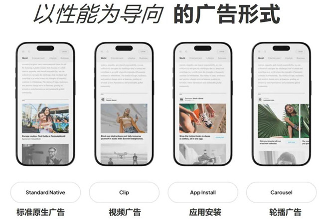 ● 效果驅(qū)動(dòng)創(chuàng)意:在注重創(chuàng)意的同時(shí)通過定制化高互動(dòng)廣告形式,賦能廣告主提升轉(zhuǎn)化效率。依托可規(guī)?;瘎?chuàng)意自動(dòng)化技術(shù),確保每支廣告都能精準(zhǔn)捕獲用戶注意力并促成行動(dòng)。