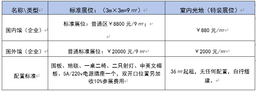 其他廣告費(fèi)用:廣場大牌子:10000元/個(gè)(3*6m);手提袋:30000元/1萬個(gè);門票背面廣告:20000元/4萬張;技術(shù)講座:10000元/每場·45分鐘(含場地及燈光音響、投影儀、講臺座椅、白板、礦泉水等)。?參展程序1.參展單位請?jiān)敿?xì)填寫《參展申請表》,并加蓋公章后傳真或交寄至大會(huì)組委會(huì);2.企業(yè)報(bào)名后7個(gè)工作日內(nèi)將參展費(fèi)用匯入大會(huì)組委會(huì)指定帳號,從而確定展位;3.展位、廣告等由組委會(huì)統(tǒng)一安排,“先申請、先付款、先分配”,協(xié)辦單位可優(yōu)先安排;4.已報(bào)名參展企業(yè)因自原因不能參展,其所繳納費(fèi)用不作返還,所訂展位由主辦方全權(quán)處理;5.服從展會(huì)總體布局,組織單位有權(quán)在必要時(shí)對個(gè)別展臺位置進(jìn)行調(diào)整,因不可抗拒的因素如自然災(zāi)害,政府行為,社會(huì)異常事件等,組織單位可以延遲或取消展會(huì);6.特別提示:所租用展位嚴(yán)禁轉(zhuǎn)租、轉(zhuǎn)售展位;不準(zhǔn)展出假冒侵權(quán)產(chǎn)品,以及在展廳內(nèi)現(xiàn)場零售展品或出售其他商品;一經(jīng)發(fā)現(xiàn)組委會(huì)將取消參展資格,展位費(fèi)用不再退還;不準(zhǔn)在通道上堆放物品。? 免費(fèi)增值服務(wù)