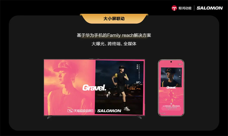 在碎片化的媒介營銷環(huán)境中,品牌如何在家庭場景中“抓住”用戶,深挖“客廳經(jīng)濟(jì)”的消費(fèi)潛力并實(shí)現(xiàn)確定性增長?9月22日,基于鴻蒙生態(tài)的全場景智慧營銷平臺——鯨鴻動能與戶外高端品牌SALOMON攜手打造的首單家庭場景廣告案例正式上線,截至目前,該案例廣告在鯨鴻動能平臺上的累計(jì)曝光量已近千萬次,此舉標(biāo)志著鯨鴻動能的家庭場景化解決方案“Family Reach”(以下簡稱“Family Reach”)全面啟動商用。
