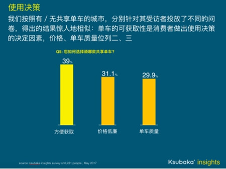 (促巴卡按照有/無(wú)共享單車(chē)的城市,分別投放了不同的問(wèn)卷,得到的結(jié)果是共享單車(chē)的可獲取性是促使消費(fèi)者做出使用決策的決定因素)