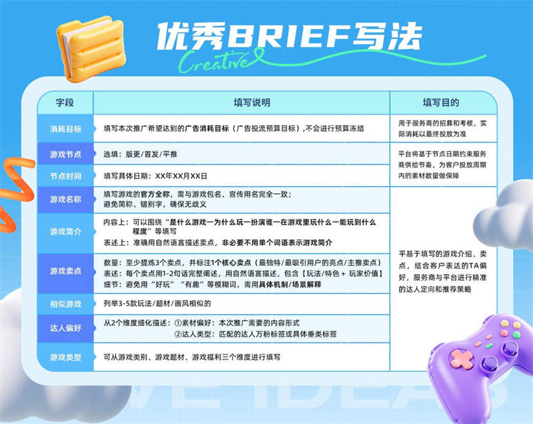 體現(xiàn)核心賣點、人群:體現(xiàn)游戲的核心賣點與目標人群,讓達人精準把握推廣核心方向