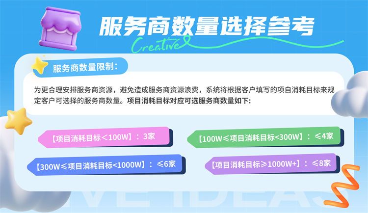 平臺線上披露的服務商標簽,是精準匹配合作方的核心參考——結合自身項目預算,參考數量建議,可合理選擇服務商量級;
