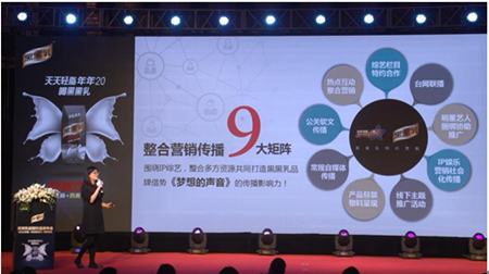 作為一個全新的時尚休閑飲品,黑黑乳選擇IP綜藝合作來撬動整個娛樂營銷模式,聯(lián)合《夢想的聲音》官方、新浪微博官方、天貓官方及直播平臺、愛奇藝/中國藍TV等媒體、知名社媒KOL聯(lián)合打造“娛樂×社交×購物場景”的首個現(xiàn)象級IP綜藝傳播事件。與節(jié)目、明星粉絲社交互動獲得好感,進行品牌資產(chǎn)轉化,將娛樂粉絲、明星粉絲轉化為品牌粉絲,并形成整個營銷閉環(huán)模式。