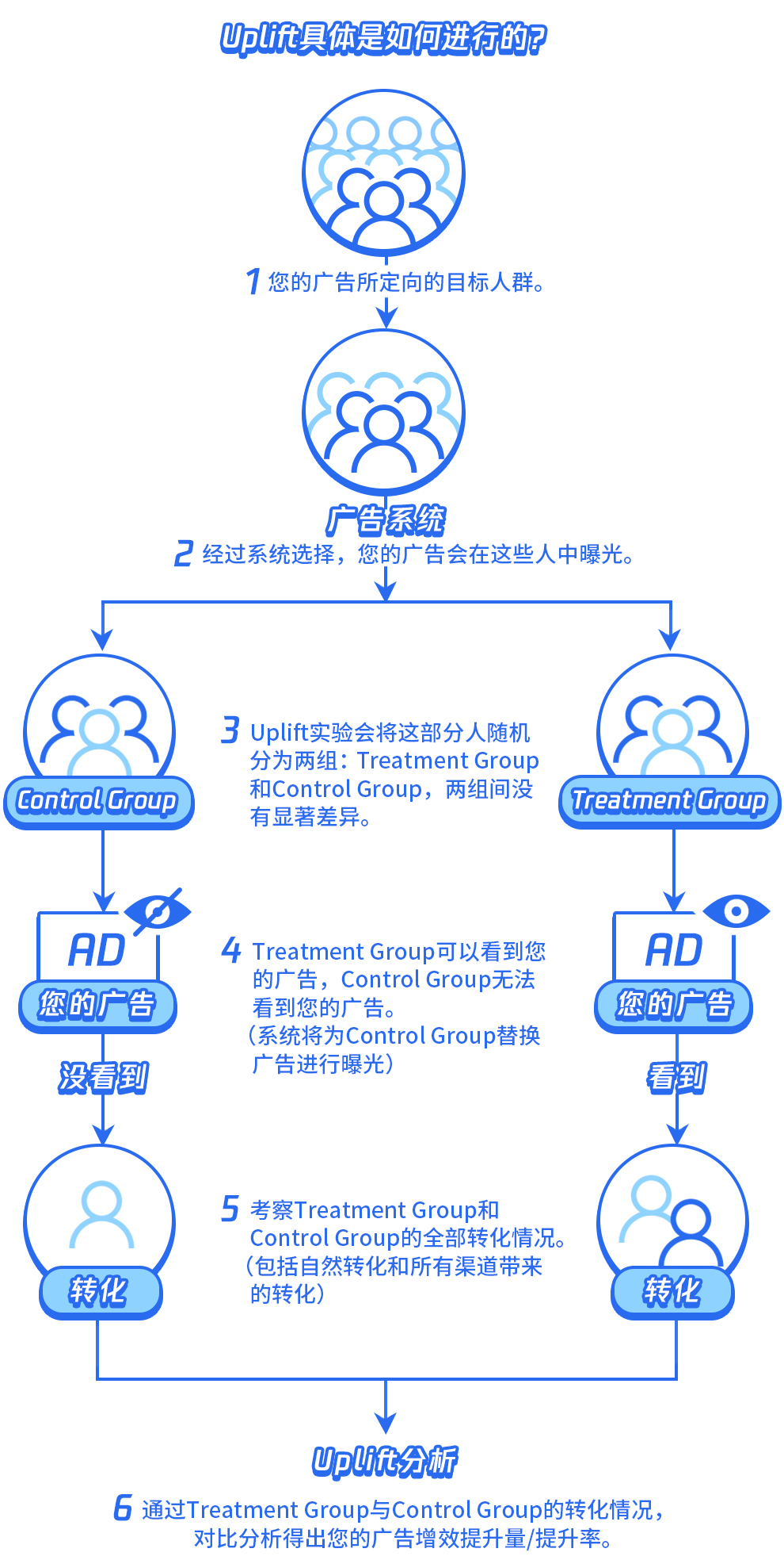 通過以上嚴(yán)謹(jǐn)?shù)目刂撇僮鳎琔plift廣告增效衡量實(shí)現(xiàn)了曝光對(duì)轉(zhuǎn)化真實(shí)增效的科學(xué)衡量,做到了曝光與轉(zhuǎn)化之間因果關(guān)系的探尋。