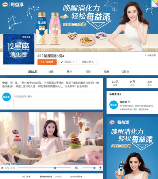 ??星座文化、地鐵包站、明星流量……玩法花樣百出,營(yíng)銷(xiāo)最終的落腳點(diǎn)還是呼吁大家關(guān)注腸胃健康,彰顯每益添的消化力,傳遞“喚醒消化力,輕松每益添”的品牌口號(hào)。