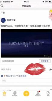 近期,雅詩(shī)蘭黛聯(lián)合QQ 空間率先推出個(gè)性贊功能,打造撩人“紅唇贊”,當(dāng)用戶為廣告點(diǎn)贊時(shí)驚喜出現(xiàn),原本不起眼的灰色大拇指圖標(biāo)瞬間變成楊冪同色號(hào)的紅唇圖標(biāo),并伴隨出現(xiàn)紅唇親吻動(dòng)態(tài),帶來(lái)極致魅惑性感體驗(yàn)。