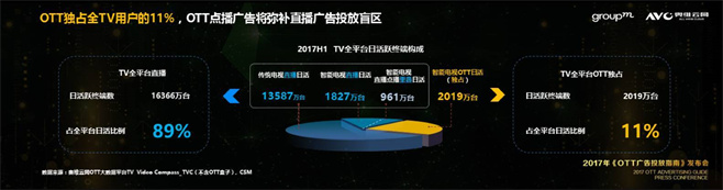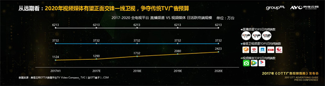 11月9日,領(lǐng)先大數(shù)據(jù)營銷服務(wù)商AdTime 與全球頂級(jí)4A代理群邑、權(quán)威第三方市場監(jiān)測公司奧維云網(wǎng)(AVC),聯(lián)合AdMaster、愛奇藝、阿里家庭娛樂、騰訊視頻、樂視超級(jí)電視、風(fēng)行等重量級(jí)企業(yè)共同呈現(xiàn)的《2017年OTT廣告投放指南》報(bào)告在上海國際會(huì)議中心正式發(fā)布。