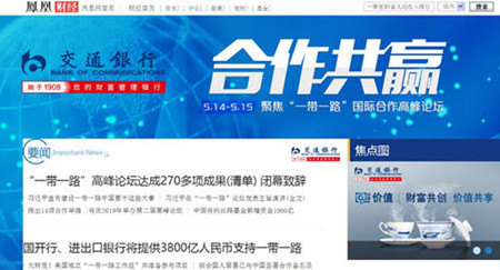 5月14日-15日,全球矚目的“一帶一路”國際合作高峰論壇在北京舉行,論壇主題為“加強國際合作,共建‘一帶一路’,實現(xiàn)共贏發(fā)展”。作為互聯(lián)網(wǎng)媒體行業(yè)的排頭兵,鳳凰網(wǎng)在“一帶一路”國際合作高峰論壇期間全程跟蹤報道,用最專業(yè)的視角,挖掘最深刻的事件;攜手眾多合作伙伴,共創(chuàng)了獨一無二的“一帶一路”傳播奇跡。開幕前精心準(zhǔn)備、會議中權(quán)威報道、閉幕后及時總結(jié),鳳凰網(wǎng)用專業(yè)的視角,為全球華人帶來了深度的全面報道。無論是從時效性、豐富度、趣味度,還是在與客戶的攜手共贏上,都當(dāng)之無愧成就了在“一帶一路”報道中的王者地位!