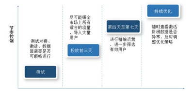 ??節(jié)奏掌控:廣告的投放需要協(xié)調(diào)多方面內(nèi)容,如產(chǎn)品特色、目標(biāo)人群、媒體特征、創(chuàng)意素材以及投放數(shù)據(jù)等紛雜信息的合理分析和處理,如果需要取得好的投放效果,張弛有度的投放節(jié)奏非常重要。 [NextPage]在投放前期,首先測試對(duì)接、激活、數(shù)據(jù)回調(diào)等是否可順暢運(yùn)行,正式投放期間,從上線開始,持續(xù)一個(gè)星期左右的第一階段投放,被稱為投放廣告的黃金周,特別是前三天,能否最大化導(dǎo)入目標(biāo)用戶至關(guān)重要,因此要盡可能鋪全市場上所有適合的流量,第四天開始,經(jīng)過大量曝光后,對(duì)優(yōu)質(zhì)流量的篩選和創(chuàng)意精準(zhǔn)投放等精細(xì)運(yùn)營,可達(dá)到一步導(dǎo)入用戶和篩選優(yōu)質(zhì)用戶的雙重功效。此外,隨時(shí)查看激活回溯數(shù)據(jù)是否異常,及時(shí)調(diào)整優(yōu)化策略也很重要。??