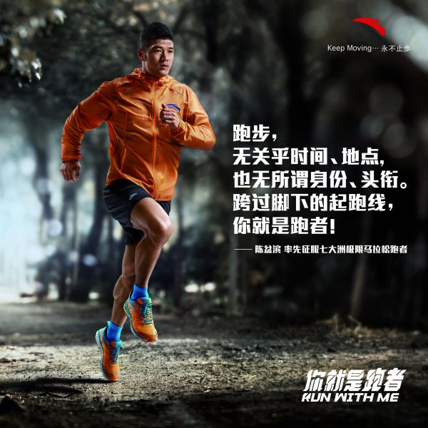 在為陳盆濱助力的同時, 在LOWE睿獅廣告?zhèn)鞑サ膮f(xié)助下,安踏還發(fā)出了“你就是跑者,RUN WITH ME!”的跑步號召,全面啟動新一輪的跑步產(chǎn)品推廣戰(zhàn)役,號召全國的受眾都能夠參與跑步,參與運(yùn)動,健康生活。
