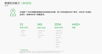 去年,朋友圈廣告的大動作就是在品牌廣告之外推出了本地推廣廣告,這一廣告形式能夠更多地服務于中小商家,而其中最大的變化就在于為廣告主新增了4000多個商圈的投放選項。這種基于地理位置推送的信息,讓人群的劃分更有價值,也更有可能提升商家信息與消費者需求的契合度。