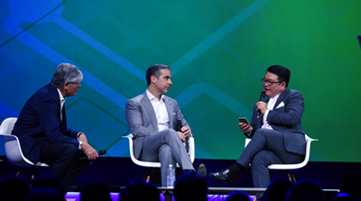 騰訊網(wǎng)絡媒體事業(yè)群總裁、集團高級執(zhí)行副總裁劉勝義與陽獅集團主席兼首席執(zhí)行官(CEO)Maurice Lévy和Facebook副總裁David Marcus圓桌對話環(huán)節(jié)