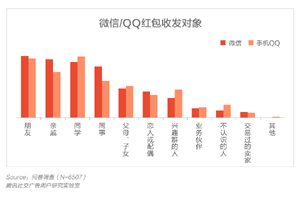 這上萬、上億的數(shù)字,你我都是其中之一,體量如此巨大的紅包到底發(fā)給了誰?數(shù)據(jù)顯示,傳統(tǒng)意義上本由長輩發(fā)給晚輩的“壓歲錢”演變成朋友、同學、同事甚至戀人間的問候神器,紅包正寄托著更廣泛的內(nèi)涵、滲透著更廣闊的場景。