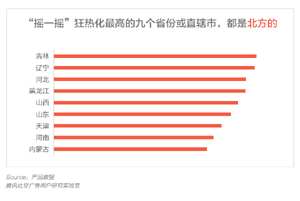 如果把紅包參與次數(shù)最多的前20%用戶稱為狂熱用戶,以微信“搖一搖”為例,女性相對于男性明顯顯示出更大的熱情;90后“體力”最棒,挑起“搖一搖”大梁;而最狂熱的九個省份或直轄市竟都來自北方,吉林、遼寧、河北名列三甲。