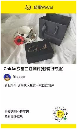因此,在常規(guī)的官方測(cè)評(píng)之外,“貓來了”另辟蹊徑,引入了小程序“貓圈WeCat”的眾測(cè)功能,邀請(qǐng)大量貓奴粉絲參與免費(fèi)試用,讓自家貓咪嘗嘗鮮。而后根據(jù)粉絲的反饋形成系列眾測(cè)報(bào)告,既提升了品牌產(chǎn)品的知名度,也進(jìn)一步打開了潛在的市場。