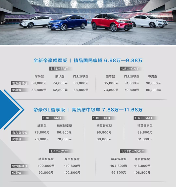 帝豪家族全系煥新上市,官方指導價6.98萬元—15.48萬元!