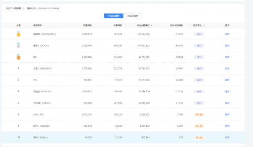 ▲6月18日京東商智《電子鎖實(shí)時(shí)TOP品牌榜》
