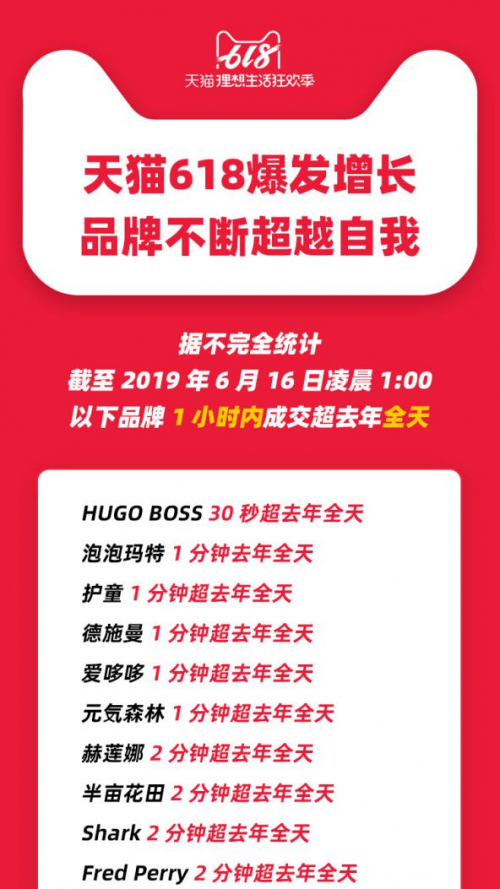6月16日,618大促進(jìn)入沖刺階段,各行業(yè)整體呈爆發(fā)式增長(zhǎng)。不少品牌在1小時(shí)內(nèi)打破去年全天成交量。據(jù)天貓數(shù)據(jù)顯示,德施曼等品牌也在1分鐘內(nèi)超越去年全天。