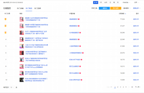 ▲6月1日天貓生意參謀《電子門鎖類目商品實(shí)時(shí)排名》
