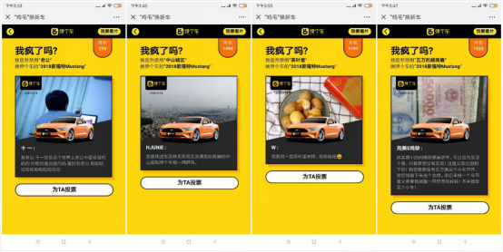 精準(zhǔn)定位并通過實力品牌營造起活動氛圍,只是品牌聯(lián)動的第一步,最終仍需要創(chuàng)意活動本身來支撐起整個營銷戰(zhàn)役,實現(xiàn)商業(yè)轉(zhuǎn)化的終極目標(biāo)。彈個車此次活動的創(chuàng)意支撐活動是#雞毛換新車#,便成功地實現(xiàn)了社會化傳播和粉絲轉(zhuǎn)化的目的。