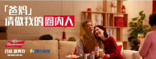 在此次獲獎(jiǎng)案例“百威CNY請(qǐng)做我的圈內(nèi)人”中,廣告主百威啤酒通過對(duì)當(dāng)前年輕人家庭關(guān)系的洞察,聯(lián)手騰訊社交與騰訊新聞,將父母與子女之間的關(guān)系作為入手點(diǎn)、以“朋友圈”作為切入點(diǎn),在春節(jié)期間圍繞“圈內(nèi)人”的核心主線,通過微博話題、朋友圈廣告、騰訊新聞、微信大V等渠道開展系列營銷活動(dòng),號(hào)召兩代人互相理解與支持。經(jīng)過精準(zhǔn)洞察與跨平臺(tái)整合營銷,百威抓住年輕用戶群體的情感需求,最終達(dá)成了提高品牌號(hào)召力的營銷目的。
