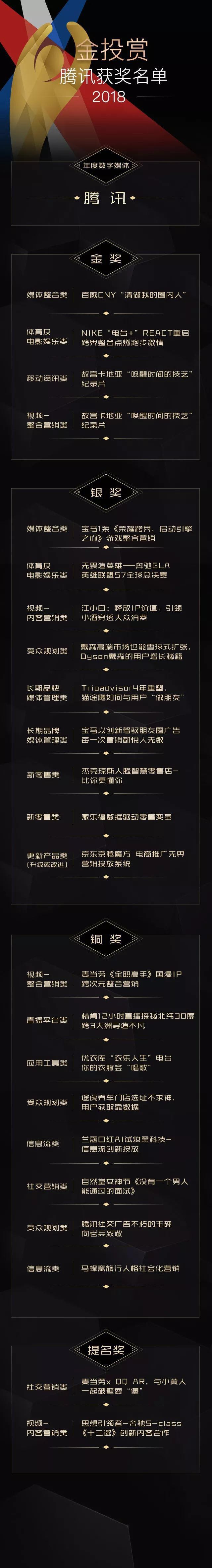 10月15日-18日,第十一屆金投賞國際創(chuàng)意節(jié)在上海舉行。憑借行業(yè)領(lǐng)先的營銷能力,騰訊助力品牌有效觸達(dá)消費(fèi)者,實(shí)現(xiàn)售賣增長的同時(shí),亦憑借創(chuàng)新營銷策略榮獲年度數(shù)字媒體平臺(tái)。
