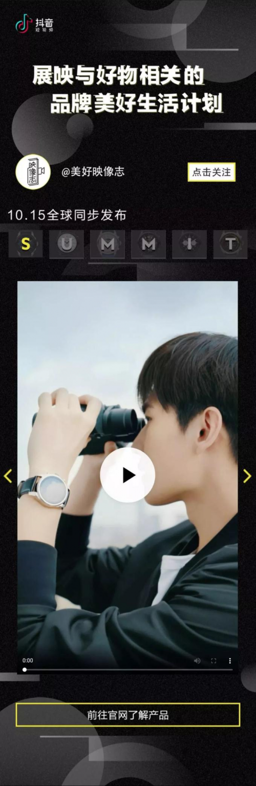 此外,你們喜歡的明星和達(dá)人也會陸續(xù)出鏡。除了首支視頻出現(xiàn)的萬寶龍品牌代言人@楊洋 ,我們還邀請了旅行達(dá)人@小小莎老師 、中國跑酷運(yùn)動員@屠峰豪 ,從形式、內(nèi)容到演繹者等維度,都將原生抖音范式融合到視頻創(chuàng)作中,以期讓大家對“年輕態(tài)”美好生活場產(chǎn)生更多共鳴。