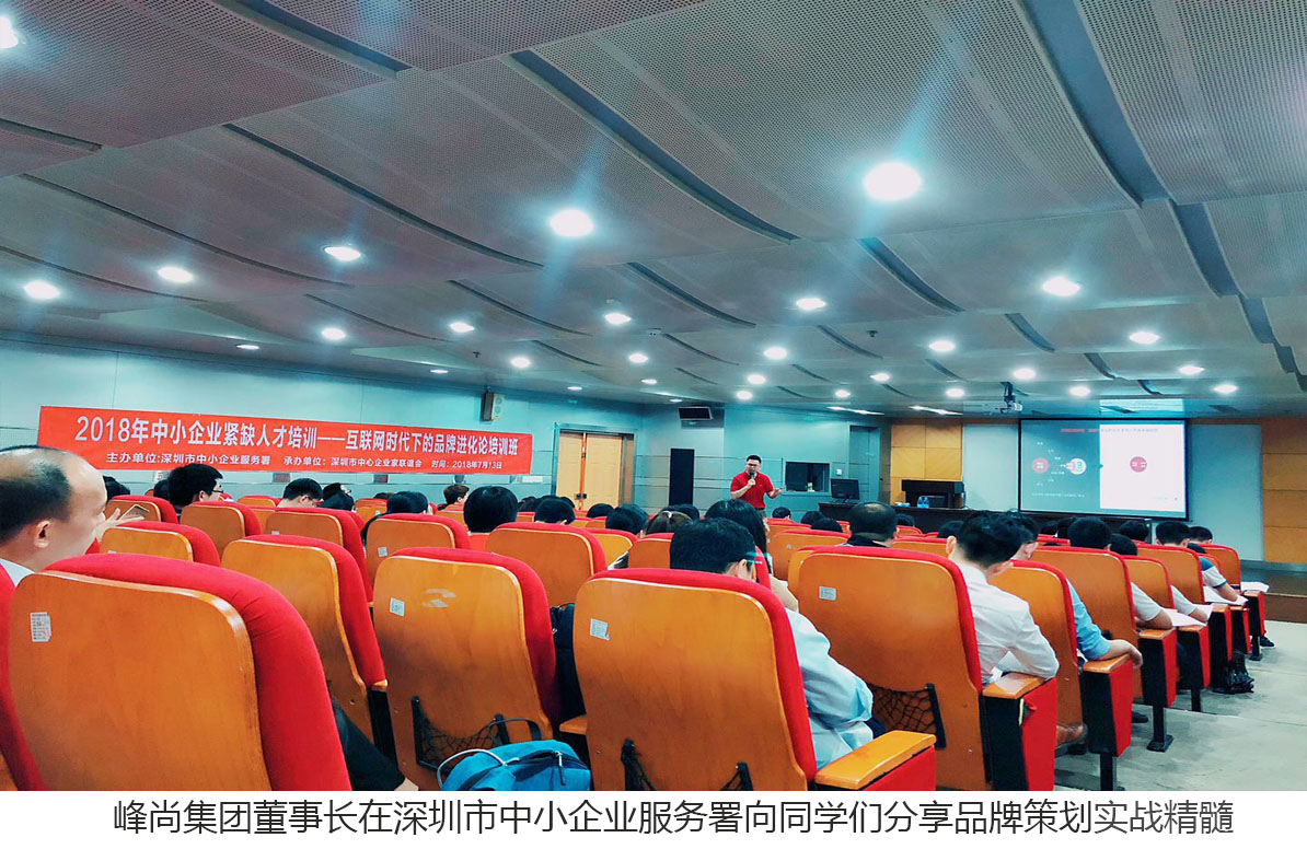 7月中旬,峰尚品牌數(shù)字營(yíng)銷機(jī)構(gòu)CEO劉敘均先生受深圳市中小企業(yè)服務(wù)署、深圳市中小企業(yè)家聯(lián)誼會(huì)的邀請(qǐng),作為2018年“深圳市中小企業(yè)產(chǎn)業(yè)緊缺人才培訓(xùn)計(jì)劃“ 的培訓(xùn)導(dǎo)師,為一百多名企業(yè)家和企業(yè)負(fù)責(zé)品牌事務(wù)的管理人員做主題為《互聯(lián)網(wǎng)時(shí)代的品牌進(jìn)化:基于業(yè)績(jī)?cè)鲩L(zhǎng)的品牌之道》的專題培訓(xùn)!