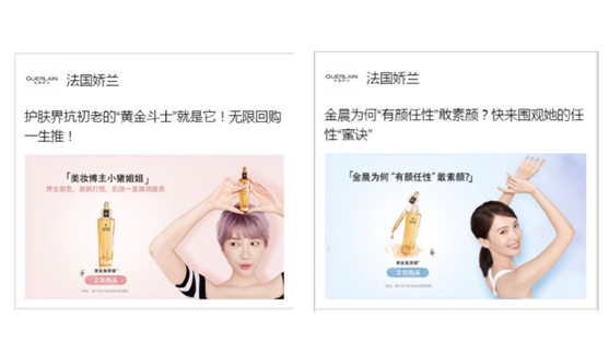 在營(yíng)銷創(chuàng)意上,法國(guó)嬌蘭的品牌圖片以目前頗受年輕人喜愛的當(dāng)紅明星作為吸引元素;且文案上也更多以年輕消費(fèi)者目前流行的詞匯元素進(jìn)行溝通,拉近品牌與年輕消費(fèi)者之間的距離。