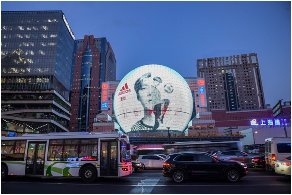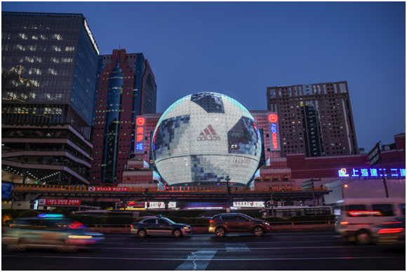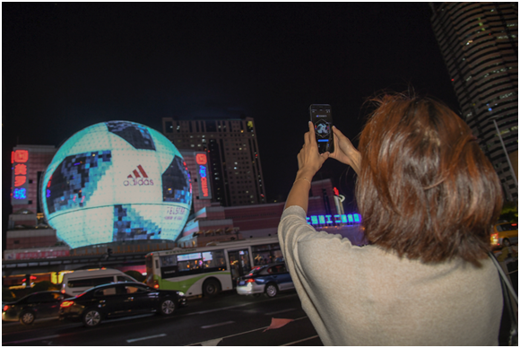 為了創(chuàng)造震撼的視覺效果,此次阿迪達斯將上海最具標志性的美羅城球形建筑打造成一顆超巨型世界杯官方比賽用球。巨大LED球型大屏循環(huán)播放23位創(chuàng)造者的人像,全天候向世界輻射創(chuàng)造能量,每一位路過的行人都感受到世界杯的激情和運動的純粹。對于球迷來說,阿迪達斯的這場營銷活動既創(chuàng)造了一個可以隨時隨地和球星互動的機會,還提供了身臨其境、虛實相生的游戲體驗。通過AR新科技,為忙碌的生活帶來輕松的調(diào)劑,用最前沿、最富創(chuàng)造力的方式與世界杯一起狂歡。