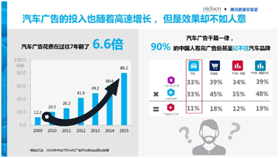 車主多元化帶來了全新的營銷挑戰(zhàn),消費(fèi)者媒體接觸行為的不斷分化,也讓營銷接觸點(diǎn)的管理變得更加困難。汽車行業(yè)在營銷上的投入成本日益增長,但效果卻乏善可陳。汽車廣告的品牌記憶度低于行業(yè)benchmark,90%的國人看完廣告后甚至記不住汽車的品牌。