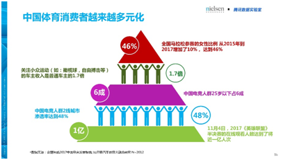 中國的汽車體育營銷是否具備同樣的土壤和空間,騰訊攜手尼爾森對此領(lǐng)域進(jìn)行了研究。研究發(fā)現(xiàn),體育產(chǎn)業(yè)的高速發(fā)展,也使得我國的體育消費(fèi)者呈現(xiàn)多樣化趨勢。最顯著的特征為女性參與者與年輕群體比例的大幅提升。另外,小眾運(yùn)動(dòng)方興未艾,高收入人群成為小眾運(yùn)動(dòng)的一大關(guān)注者。同時(shí)電競運(yùn)動(dòng)爆發(fā)式崛起,成為年輕人關(guān)注和討論的熱點(diǎn),并廣泛分布于消費(fèi)者集中地區(qū)。