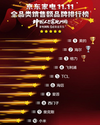 今年雙十一成績單公布,美的總銷售額同比增長70%,在天貓、京東、蘇寧易購三大平臺家電全品類均排名第一,連續(xù)5年蟬聯(lián)家電全品類銷售冠軍。