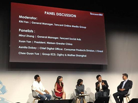 隨后的“市場(chǎng)營(yíng)銷×技術(shù)的未來(lái)”討論環(huán)節(jié),騰訊社交廣告副總經(jīng)理張敏毅,與尼爾森大中華區(qū)總裁嚴(yán)旋,歐萊雅消費(fèi)產(chǎn)品部首席數(shù)字官Asmita Dubey,以及上海奧美的集團(tuán)執(zhí)行創(chuàng)意總監(jiān)余子筠,共同探討了新形勢(shì)下,中國(guó)營(yíng)銷行業(yè)的發(fā)展趨勢(shì)。