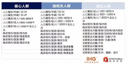 項(xiàng)目以特定網(wǎng)絡(luò)行為特征+酒店人口屬性的方式,結(jié)合第三方合作公司數(shù)據(jù),為洲際酒店集團(tuán)春節(jié)項(xiàng)目定制了對春節(jié)旅游、預(yù)訂酒店的人群屬性標(biāo)簽,在投放期間,根據(jù)實(shí)際情況,對人群進(jìn)行不斷優(yōu)化調(diào)整。