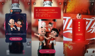 去年12月,在支付寶推出紅包大招“AR實(shí)景紅包”后,這種LBS(基于位置服務(wù))+AR+紅包的交互方式吸引了眾多品牌的關(guān)注。同時(shí)期,可口可樂攜手優(yōu)酷,以“就要年在一起”為新春傳播主題,獨(dú)家搭載支付寶“AR實(shí)景紅包”全新產(chǎn)品,讓億萬用戶在春節(jié)時(shí)刻與可口可樂深度互動(dòng)。值得一提的是,參與掃“福娃”的活動(dòng)用戶中有55%是90后年輕人,充分彰顯了可口可樂活動(dòng)在年輕群體中的影響力。
