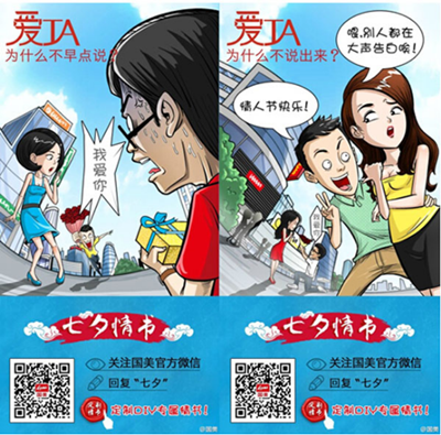 ??七夕,國美與國內(nèi)知名婚戀網(wǎng)百合進(jìn)行跨界合作,首次試水婚戀市場。國美聯(lián)合百合,發(fā)起“中國首個(gè)單身福利日”活動(dòng)。國美通過發(fā)起“定制專屬情書”的愛情告白活動(dòng),為年輕消費(fèi)者搭建個(gè)性化“示愛平臺(tái)”,同時(shí),消費(fèi)者可在國美實(shí)體店領(lǐng)取線上同款紙質(zhì)情書賀卡,現(xiàn)場親筆書寫自己的情書。