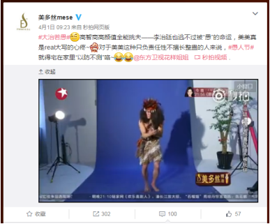 ??在這方面,伊利安慕希酸奶《奔跑吧,兄弟4》、美多絲《花樣姐姐2》等戶外綜藝節(jié)目就做的較為出色。一方面大量的戶外場景,各種突發(fā)情況為制作花絮,剪輯新內(nèi)容提供了豐富素材。另一方面,通過時下流行的鬼畜剪輯風,各種各路明星的眼球效應(yīng)和搞笑效果就得到了二次放大。精通此道的美多絲不但利用豐富素材制作了多個H5游戲,達到了良好的互動作用,鬼畜風的短視頻更是在網(wǎng)絡(luò)上受到強烈關(guān)注,特別是李治廷的野人裝扮,網(wǎng)友紛紛留言:笑到噴飯!