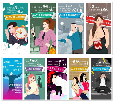 “生活會讓你苦上一陣子,等你適應(yīng)以后,再讓你苦上一輩子”“掙錢是一種能力,花錢是一種技術(shù),你能力有限,技術(shù)卻很高”“對于現(xiàn)在的高房價,你也不用太過擔(dān)心,反正跌了你也一樣買不起”……九張海報文案,句句戳中年輕人的“痛點”,然而九張海報在曬“喪”過后又出現(xiàn)了轉(zhuǎn)折——海報中心位置一句“人生不能只有這樣”異常醒目。