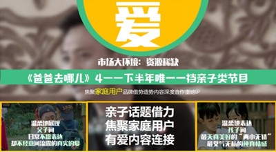 《爸爸去哪兒4》作為市場上下半年唯一一檔親子類節(jié)目,聚焦家庭用戶品牌借勢造勢內容深度合作的重磅IP,是品牌營銷贏在起跑線最聰明的選擇。從節(jié)目內容定位來看,節(jié)目溫柔展現(xiàn)父子間日常展現(xiàn)最真實的父愛以及孩子們的童真,有愛的內容連接勢必引爆親子話題。