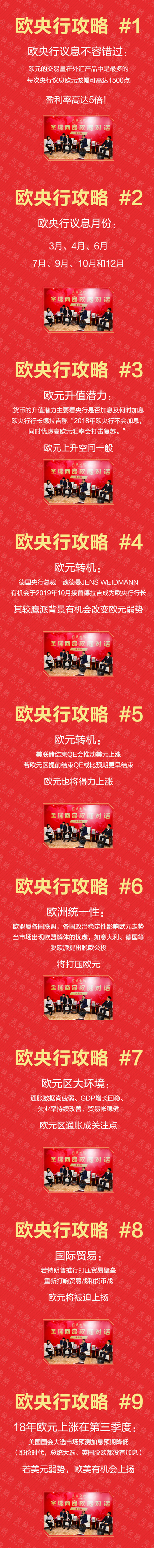 都說“央行議息就如財(cái)神爺開金庫”,明天(周四)將有超級央行--歐洲央行召開利率決議會議,歐元波幅有機(jī)會高達(dá)1500點(diǎn)子,真的不容錯過。此次議息可能在會后宣布逐步退出債券購買的決定,市場也認(rèn)為不會出現(xiàn)新的政策信號,唯一的變化可能將是為9月宣布的再投資政策鋪路。