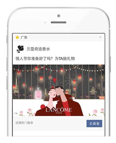 您只需要提供1000*560px,90kb以內(nèi)的JPG格式圖片,即可在用戶的好友動(dòng)態(tài)中投放一條圖文廣告。圖文廣告支持直接跳轉(zhuǎn)至您提供的目標(biāo)頁(yè)面,您可以實(shí)現(xiàn)與用戶進(jìn)行活動(dòng)互動(dòng)、引導(dǎo)移動(dòng)應(yīng)用下載、優(yōu)惠購(gòu)買等多種豐富品牌活動(dòng)。