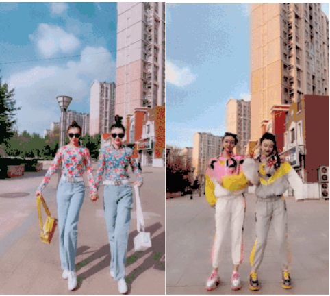 ??遼寧沈陽(yáng)的街頭,蕊蕊與她的搭檔偶爾化身復(fù)古摩登女郎,喇叭袖上衣與褲裝、裙裝的完美搭配,在濃濃的設(shè)計(jì)感中帶點(diǎn)可愛(ài)與俏皮。有時(shí),她還會(huì)穿上如今人氣極高的運(yùn)動(dòng)風(fēng)套裝,簡(jiǎn)單卻也有趣的細(xì)節(jié)設(shè)計(jì),為這個(gè)季節(jié)的穿搭增添不少青春與時(shí)尚的元素。這一系列靚麗出挑的服飾搭配演變成了163條10幾秒青春洋溢的短視頻,向她快手賬號(hào)上的13萬(wàn)粉絲們分享。