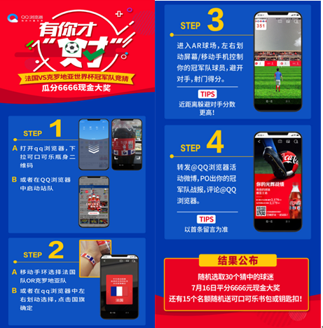 可口可樂在今年世界杯之時展開的有你才“隊”的營銷活動當中,也與QQ瀏覽器合作,以攝像頭掃描為技術創(chuàng)意制作了一個為自己喜歡的球隊打CALL的AR小游戲,以互動連接現實與虛擬的場景、趣味而炫酷的互動體驗贏取球迷們的歡心。這場活動獲得了超過2000萬用戶的參與,也帶給了可口可樂可觀的銷量刺激,世界杯期間賣出3億瓶專屬世界杯的可口可樂飲料。